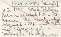 H. S. [SZATKOWSKI Henryk] 1939 Służba Polskiego Radia na zawodach FIS w Zakopanem. 1103 minuty audycji krajowych i 2360 minut transmisji zagranicznych.