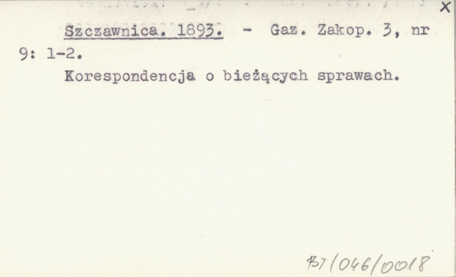 Gazeta Zakopiańska, 3, nr 9: 1-2. Korespondencja o bieżących sprawach.
