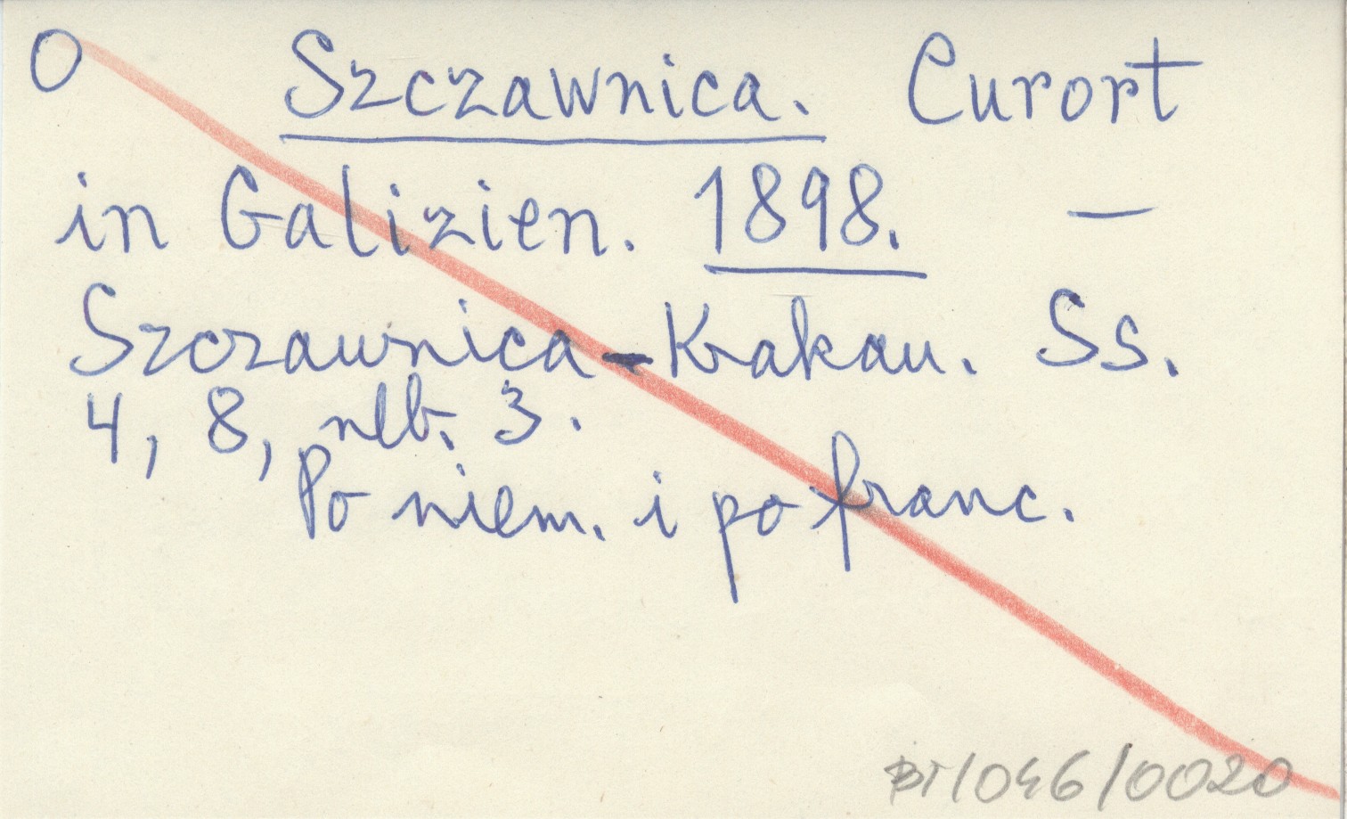 Szczawnica ; Krakau ; , 4, 8, [3] s. Po niemiecku i po francusku.