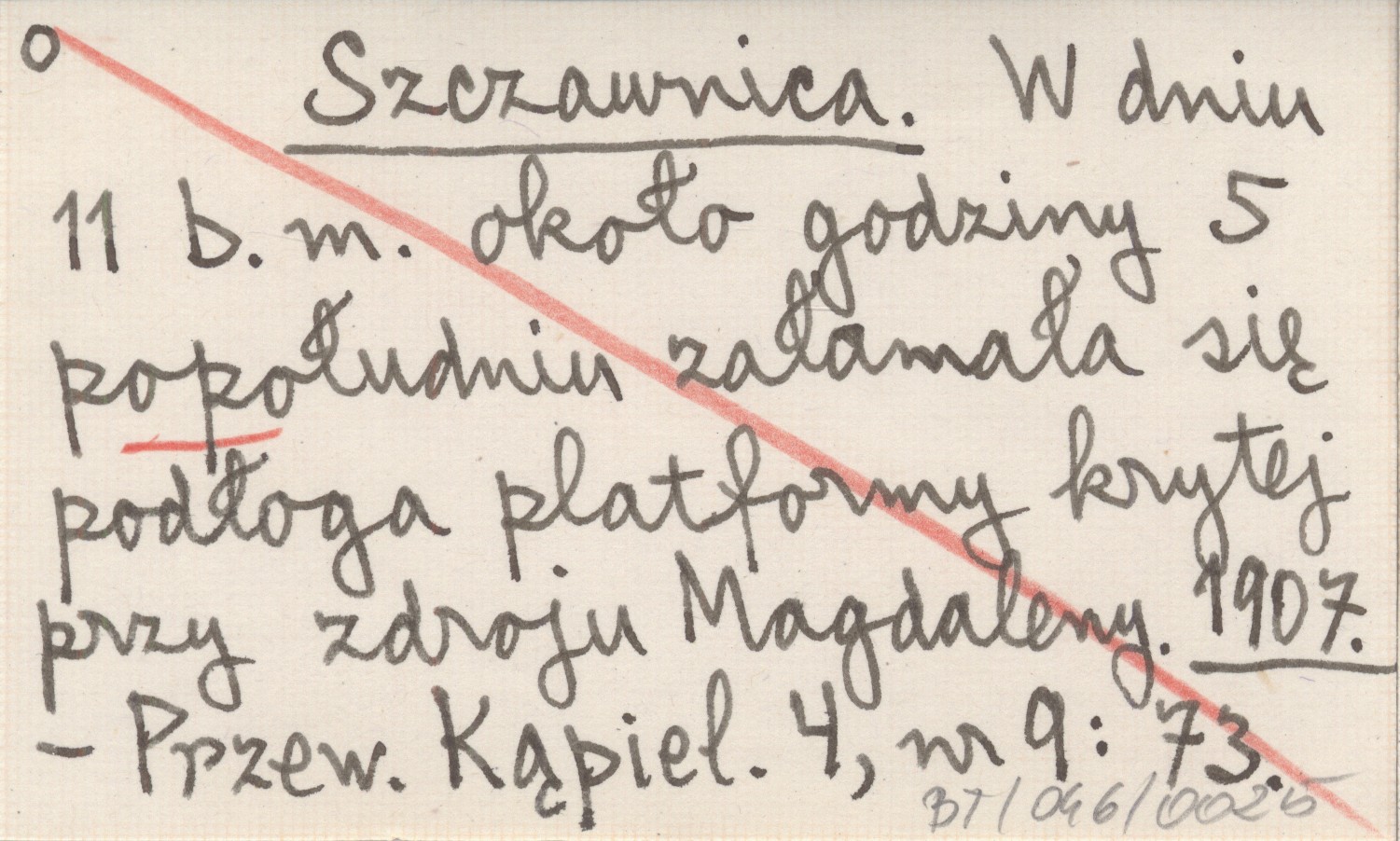 Szczawnica. W dniu 11 b.m. około godz. 5 popołudniu załamała się podłoga platformy krytej przy zdroju Magdaleny. 1907