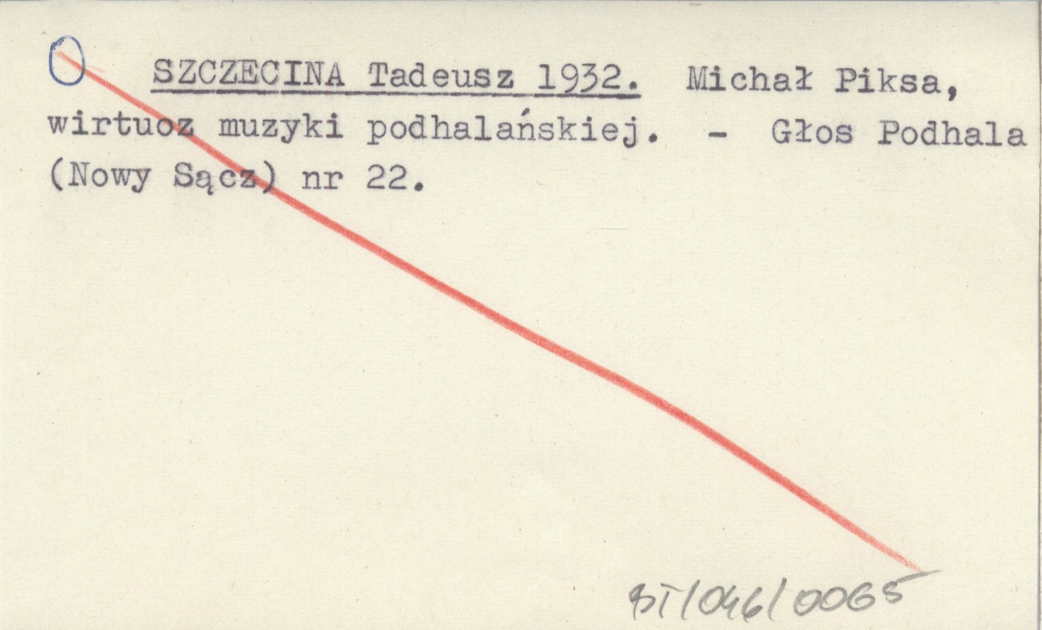 SZCZECINA Tadeusz 1932 Michał Piksa, wirtuoz muzyki podhalańskiej.