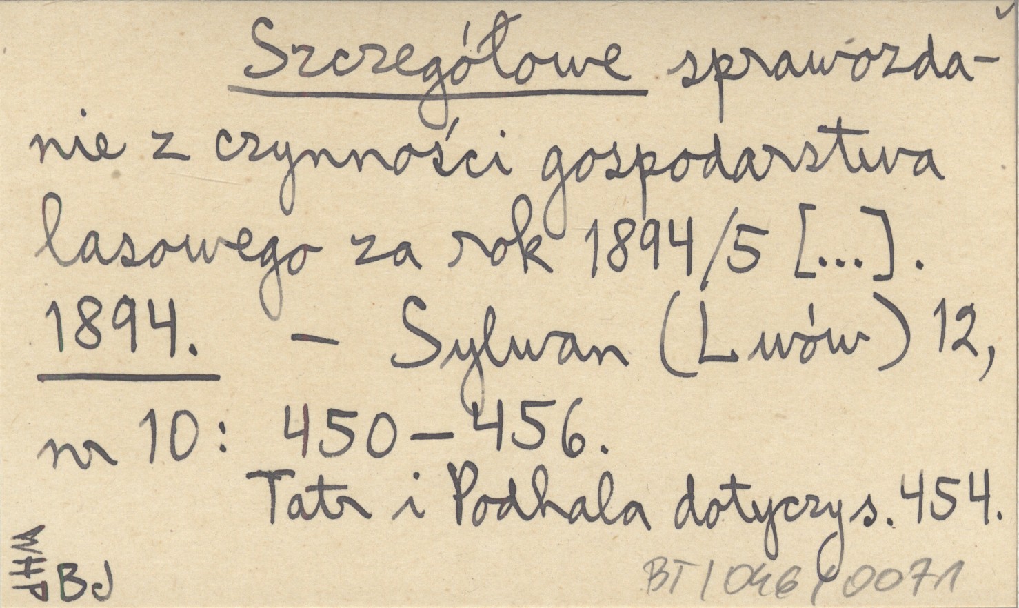 Szczegółowe sprawozdanie z czynności gospodarstwa lasowego za rok 1894/5 [...]. 1894