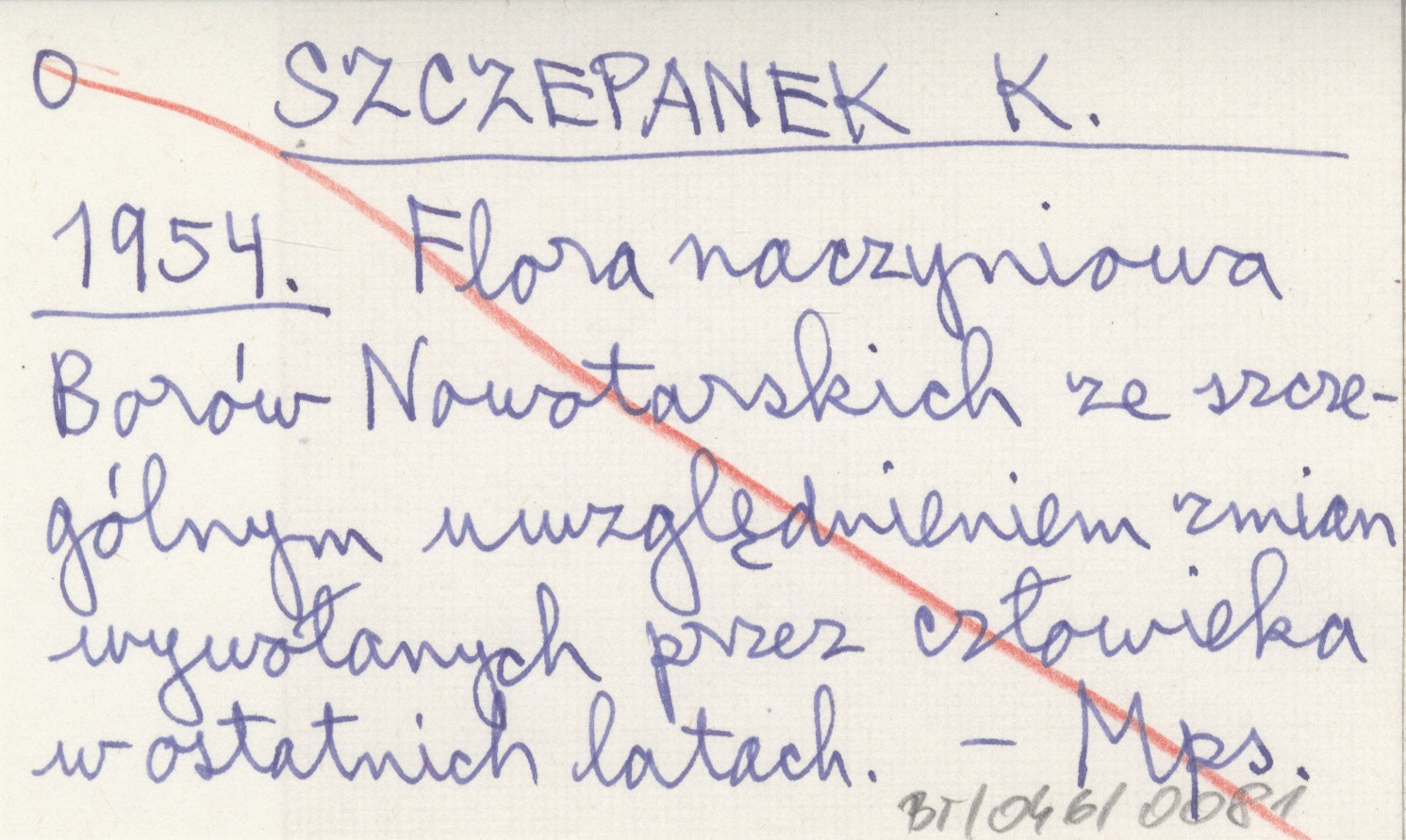 SZCZEPANEK K. 1954 Flora naczyniowa Borów Nowotarskich ze szczególnym uwzględnieniem zmian wywołanych przez człowieka w ostatnich latach.