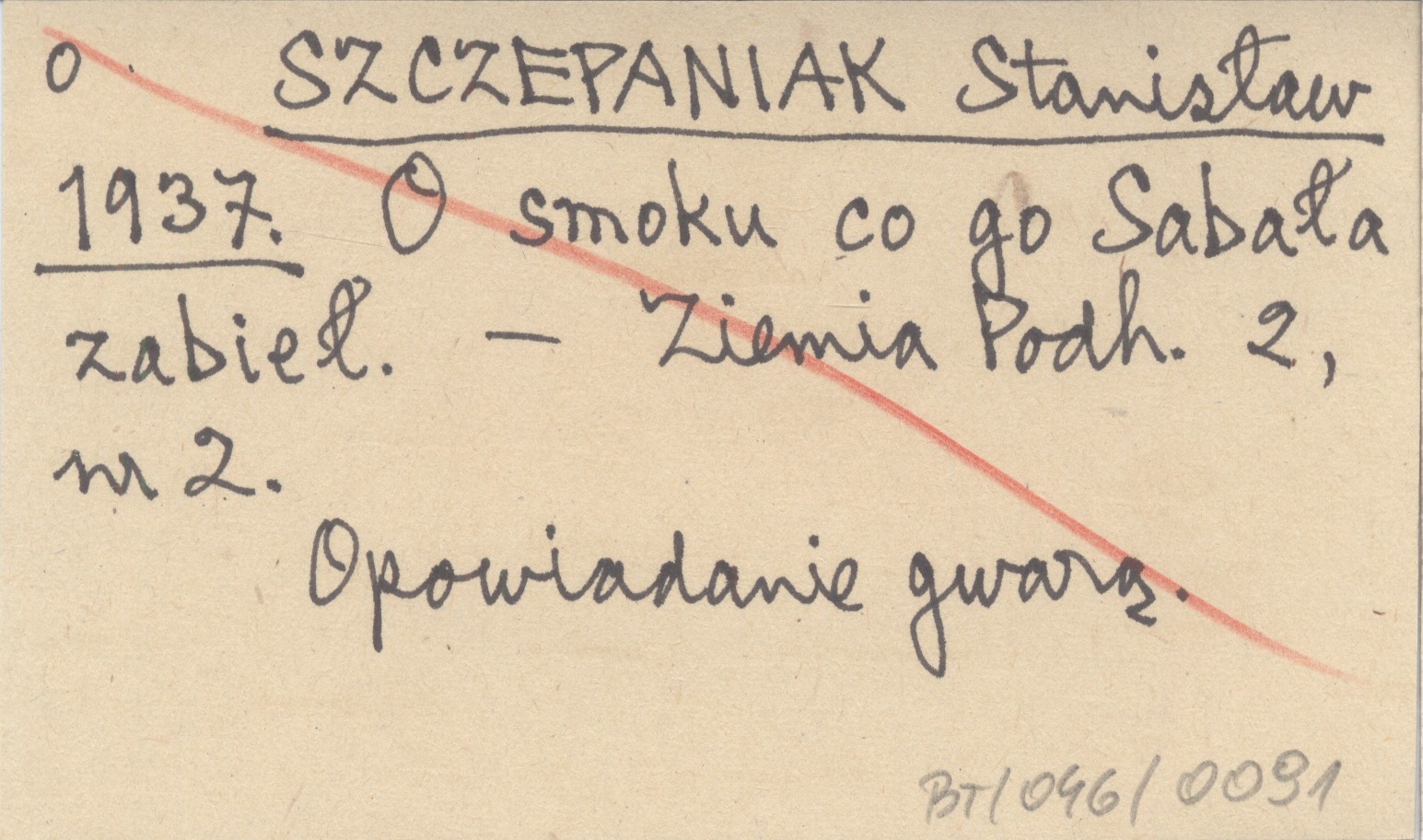 SZCZEPANIAK Stanisław 1937 O smoku co go Sabała zabieł.