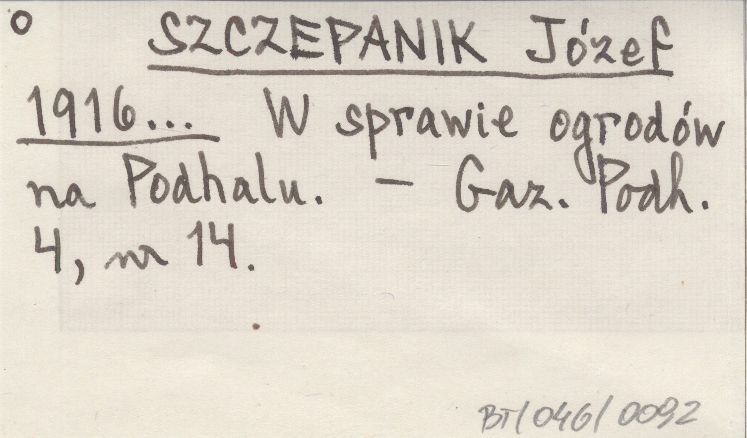 SZCZEPANIK Józef 1916... W sprawie ogrodów na Podhalu.