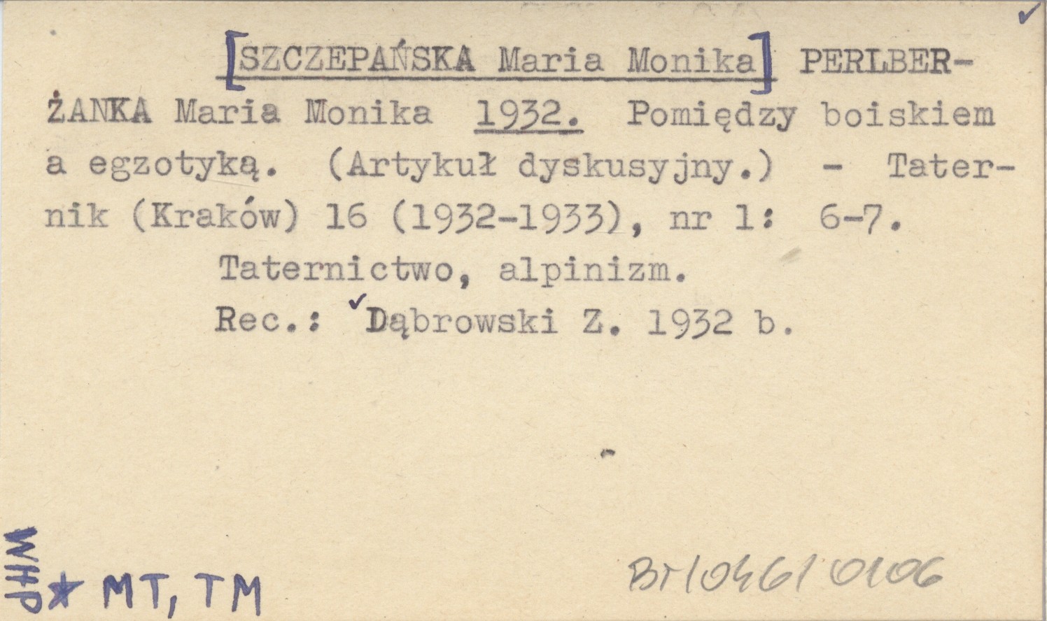 PERLBERŻANKA Maria Monika [SZCZEPAŃSKA Maria Monika] 1932 Pomiędzy boiskiem a egzotyką. (Artykuł dyskusyjny).