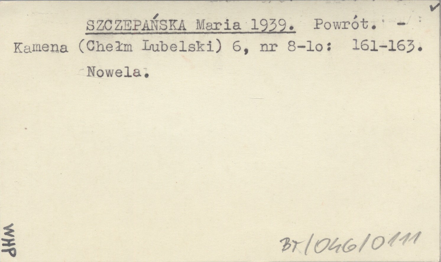 Kamena (Chełm Lubelski) , 6, nr 8-10: 161-163. Nowela.