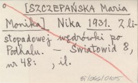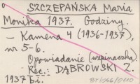 SZCZEPAŃSKA Maria Monika 1937 Godziny.