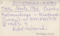 SZCZEPAŃSKA-NIEDENTHAL Józefa 1966 Czarka Malczewskiego.