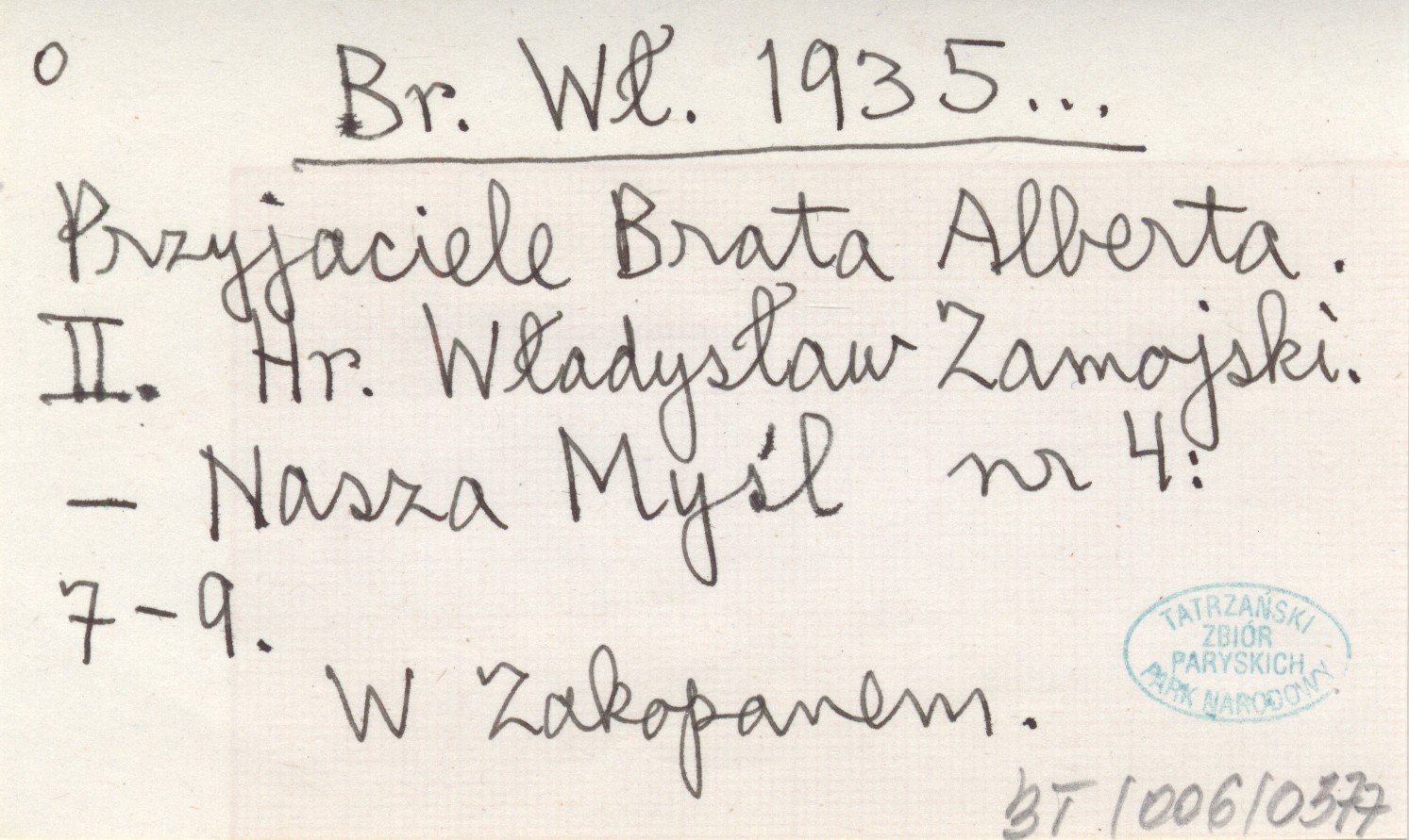 Br. Wł. 1935... Przyjaciele Brata Alberta. II. Hr. Władysław Zamojski.