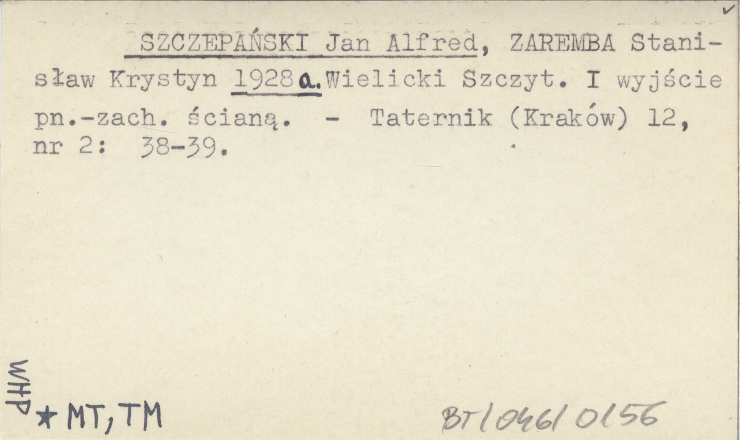 SZCZEPAŃSKI Jan Alfred ZAREMBA, Stanisław Krystyn. ; 1928 a Wielicki Szczyt. I wyjście pn.-zach. ścianą.