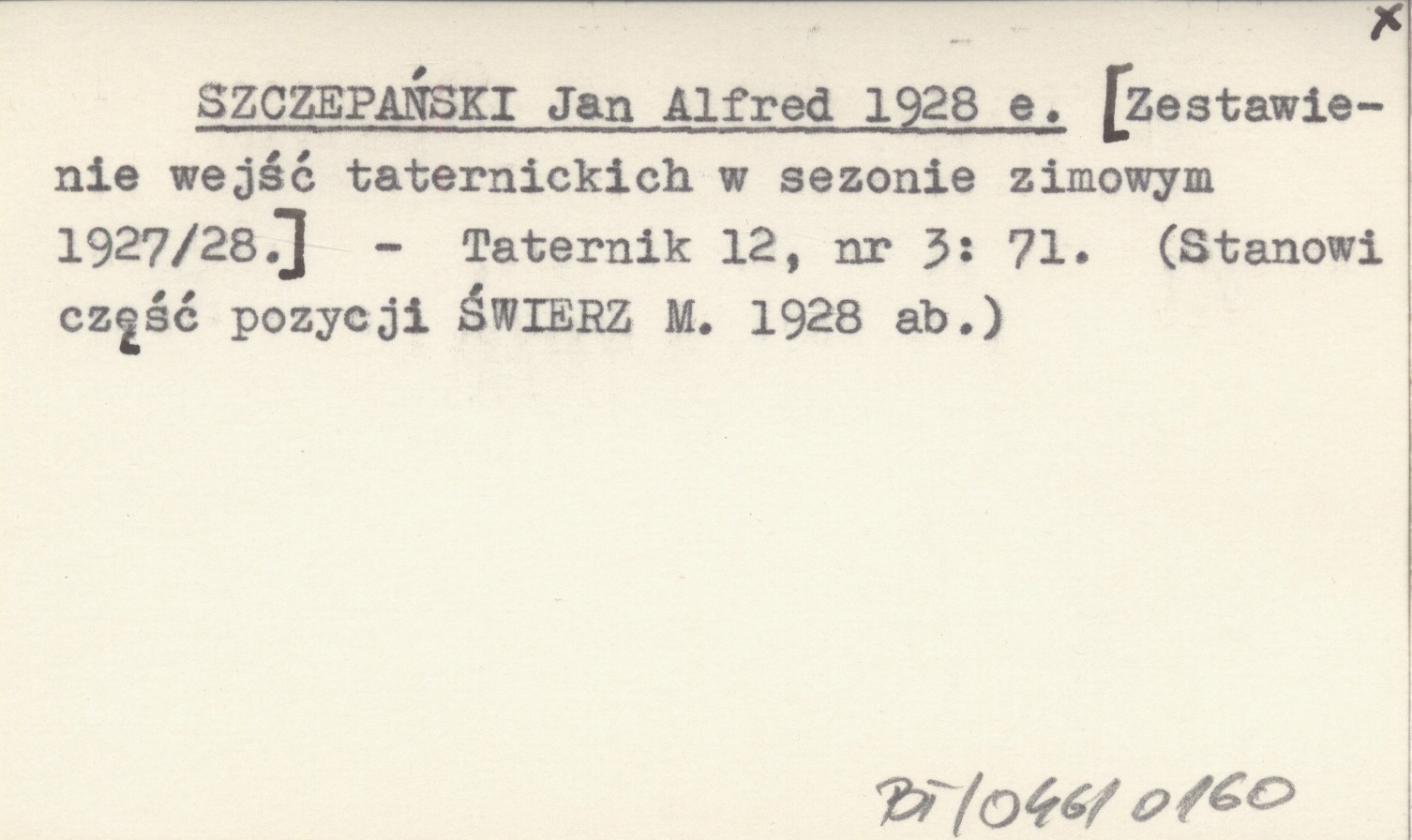 SZCZEPAŃSKI Jan Alfred 1928 e [Zestawienie wejść taternickich w sezonie zimowym 1927/28.]