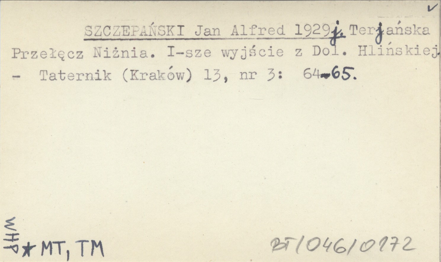 SZCZEPAŃSKI Jan Alfred 1929 j Terjańska Przełęcz Niżnia. I-sze wyjście z Dol. Hlińskiej.