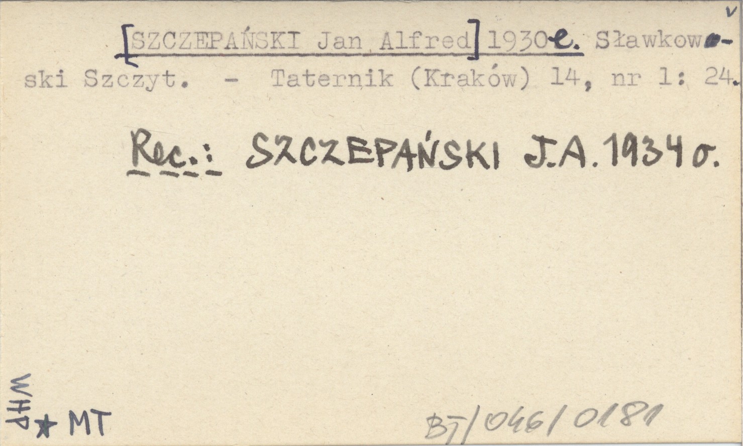 Taternik (Kraków) , 14, nr 1: 24. REC: SZCZEPAŃSKI J. A. 1934 o
