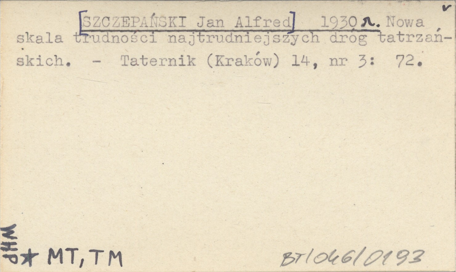[SZCZEPAŃSKI Jan Alfred] 1930 r Nowa skala trudności najtrudniejszych dróg tatrzańskich.