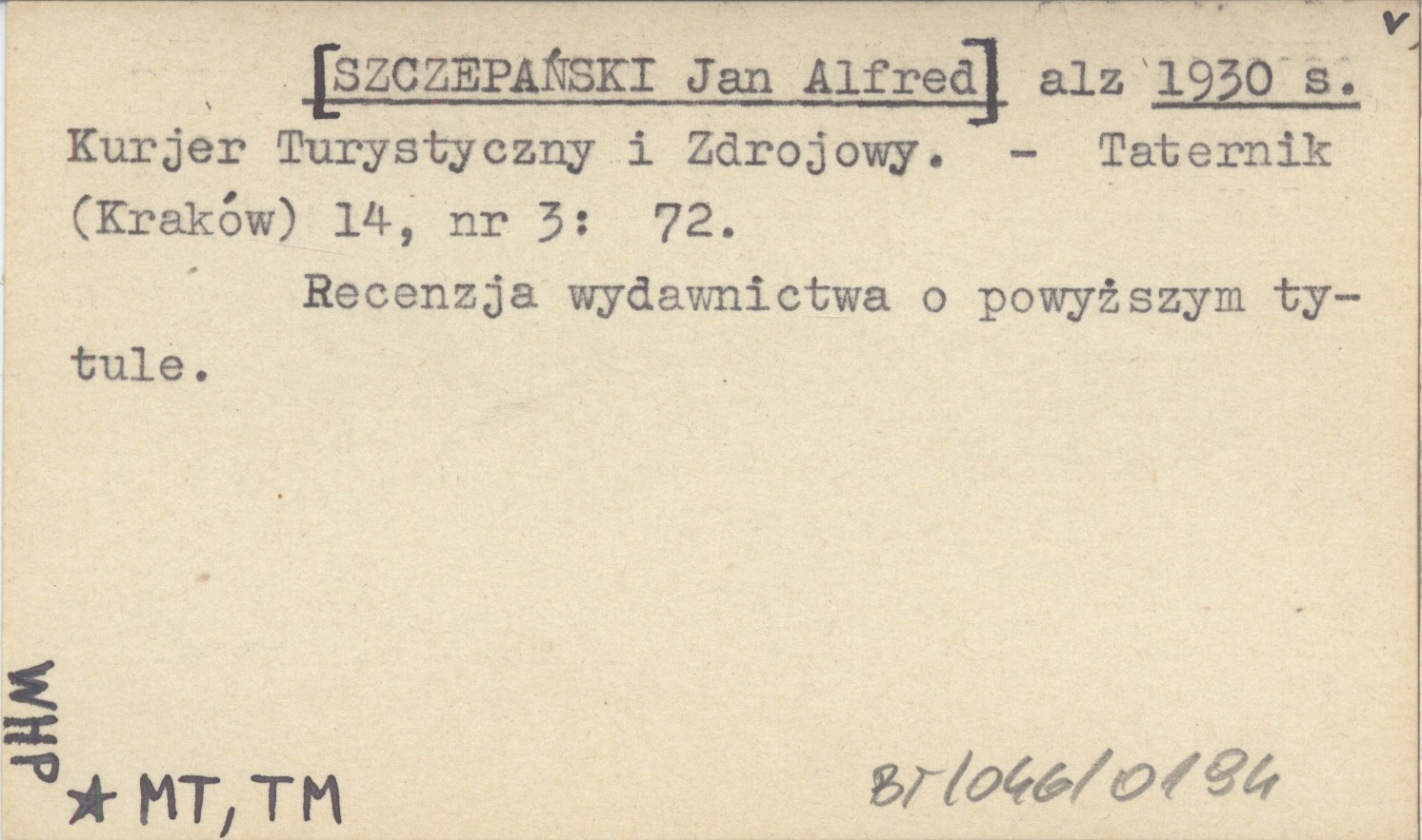 Taternik (Kraków) , 14, nr 3: 72. Recenzja wydawnictwa o powyższym tytule.
