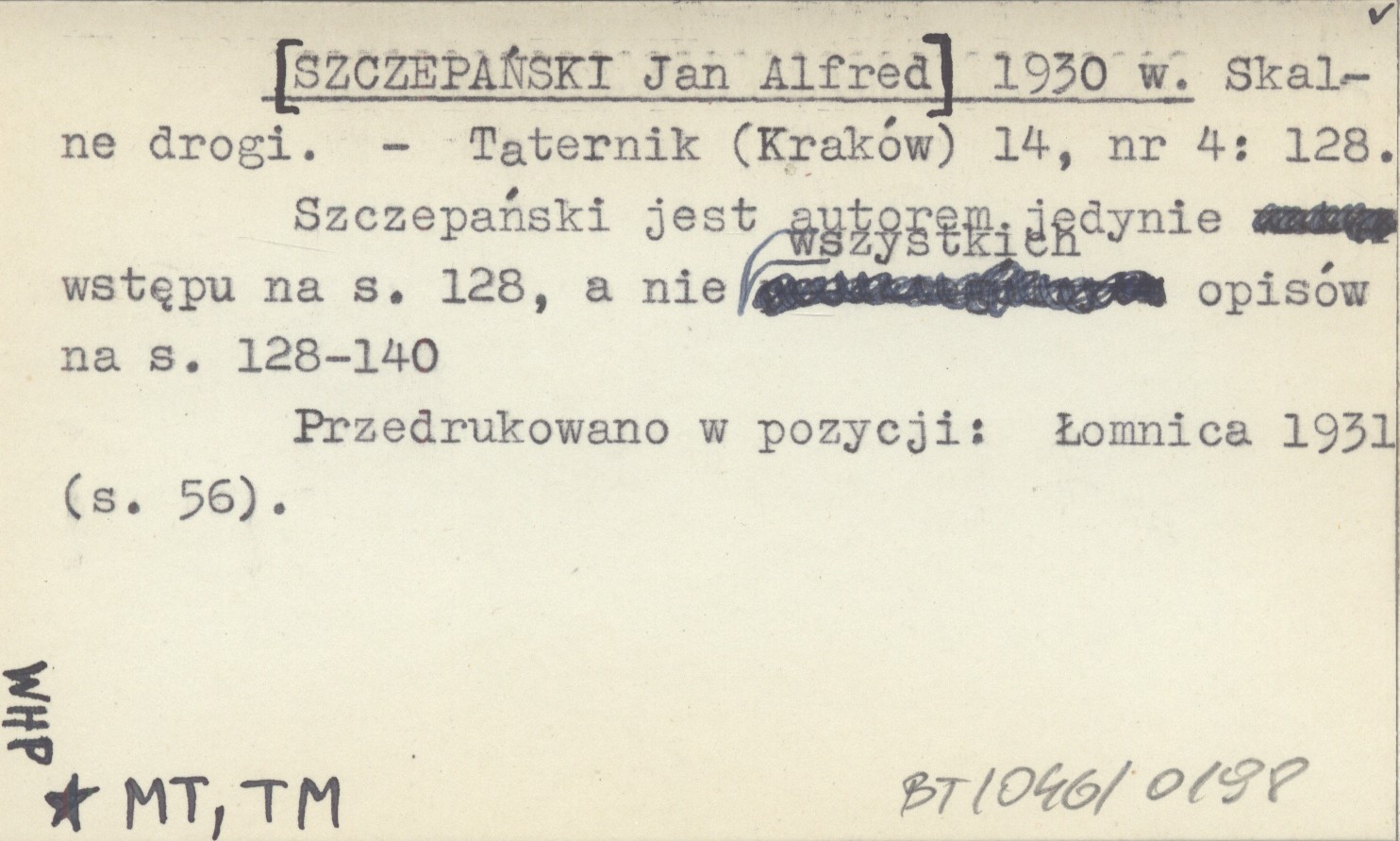Taternik (Kraków) , 14, nr 4: 128. Szczepański jest autorem jedynie wstępu na s. 128, a nie wszystkich opisów na s. 128-140. Przedrukowano w pozycji: Łomnica 1931: 56.