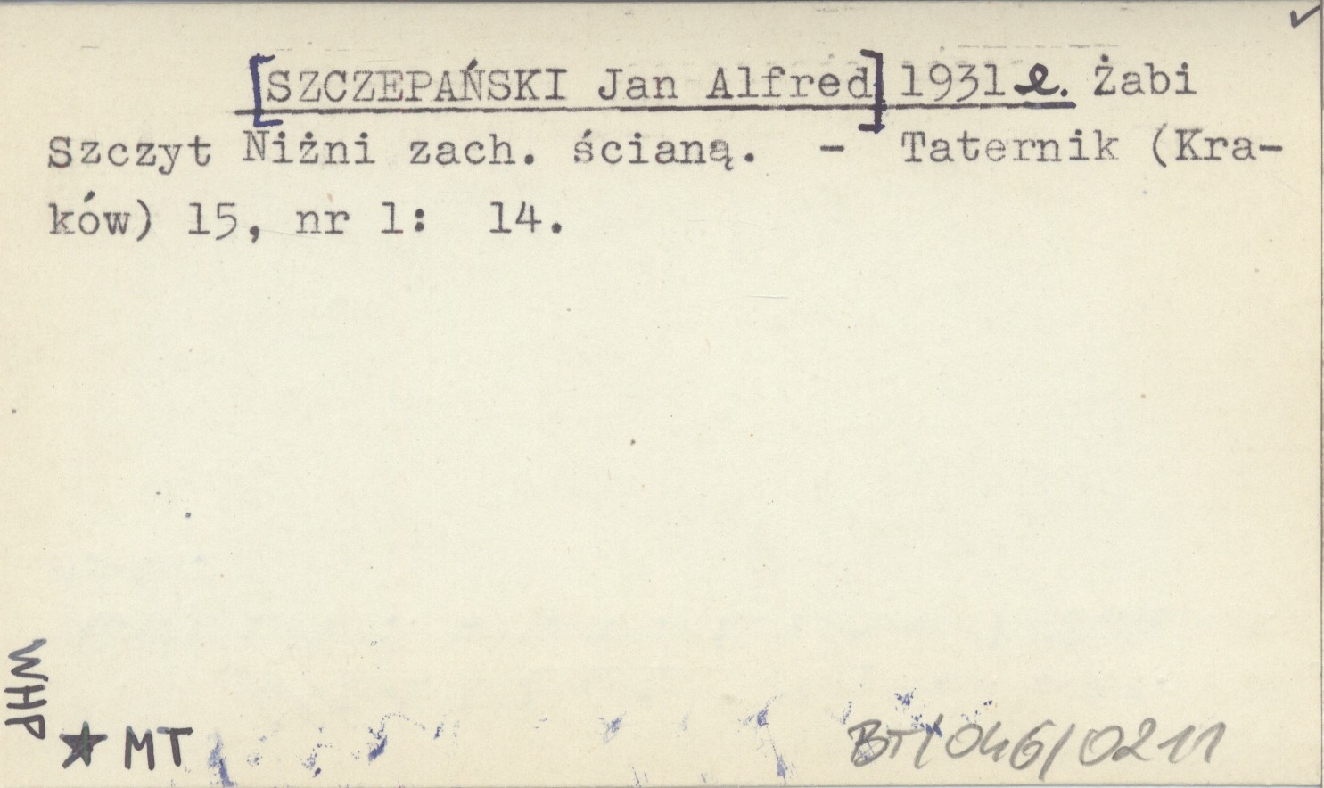 Taternik (Kraków) , 15, nr 1: 14.