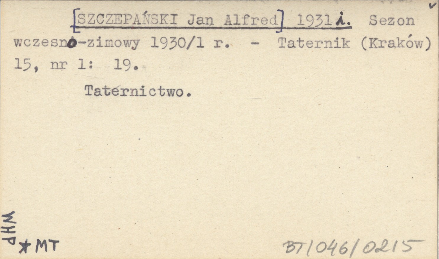 [SZCZEPAŃSKI Jan Alfred] 1931 i Sezon wczesno-zimowy 1930/1 r.