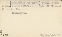 [SZCZEPAŃSKI Jan Alfred] 1931 h Sezon letni 1930 r.