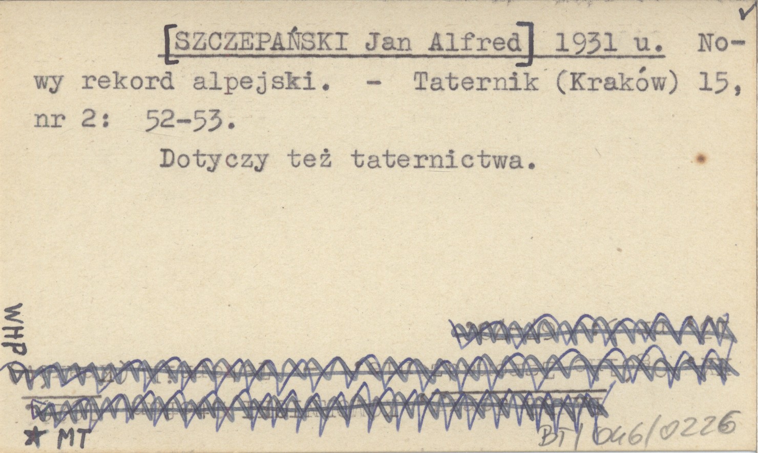 [SZCZEPAŃSKI Jan Alfred] 1931 u Nowy rekord alpejski.