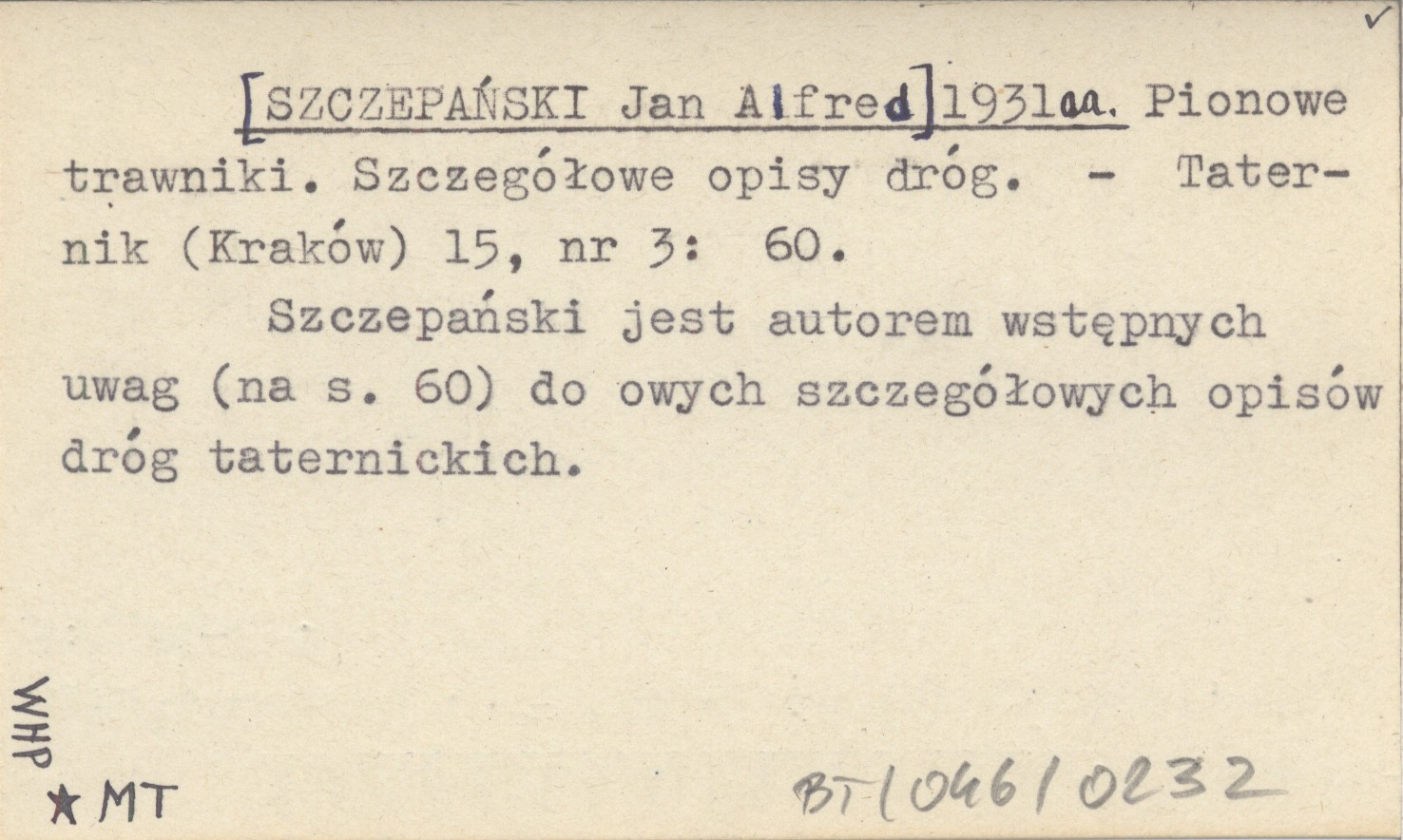 Taternik (Kraków) , 15, nr 3: 60. Szczepański jest autorem wstępnych uwag (na s. 60) do owych szczegółowych opisów dróg taternickich.