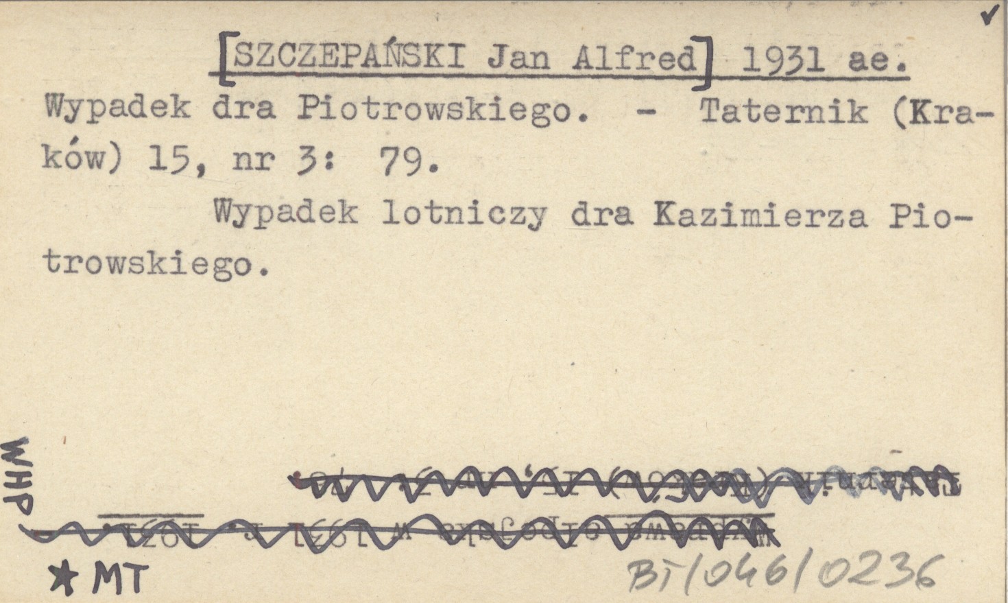 [SZCZEPAŃSKI Jan Alfred] 1931 ae Wypadek dra Piotrowskiego.