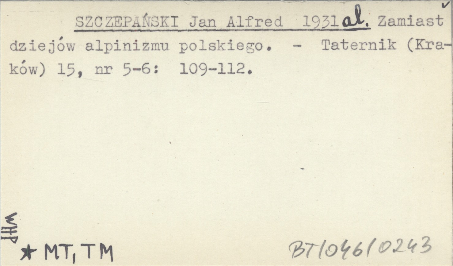 SZCZEPAŃSKI Jan Alfred 1931 al Zamiast dziejów alpinizmu polskiego.