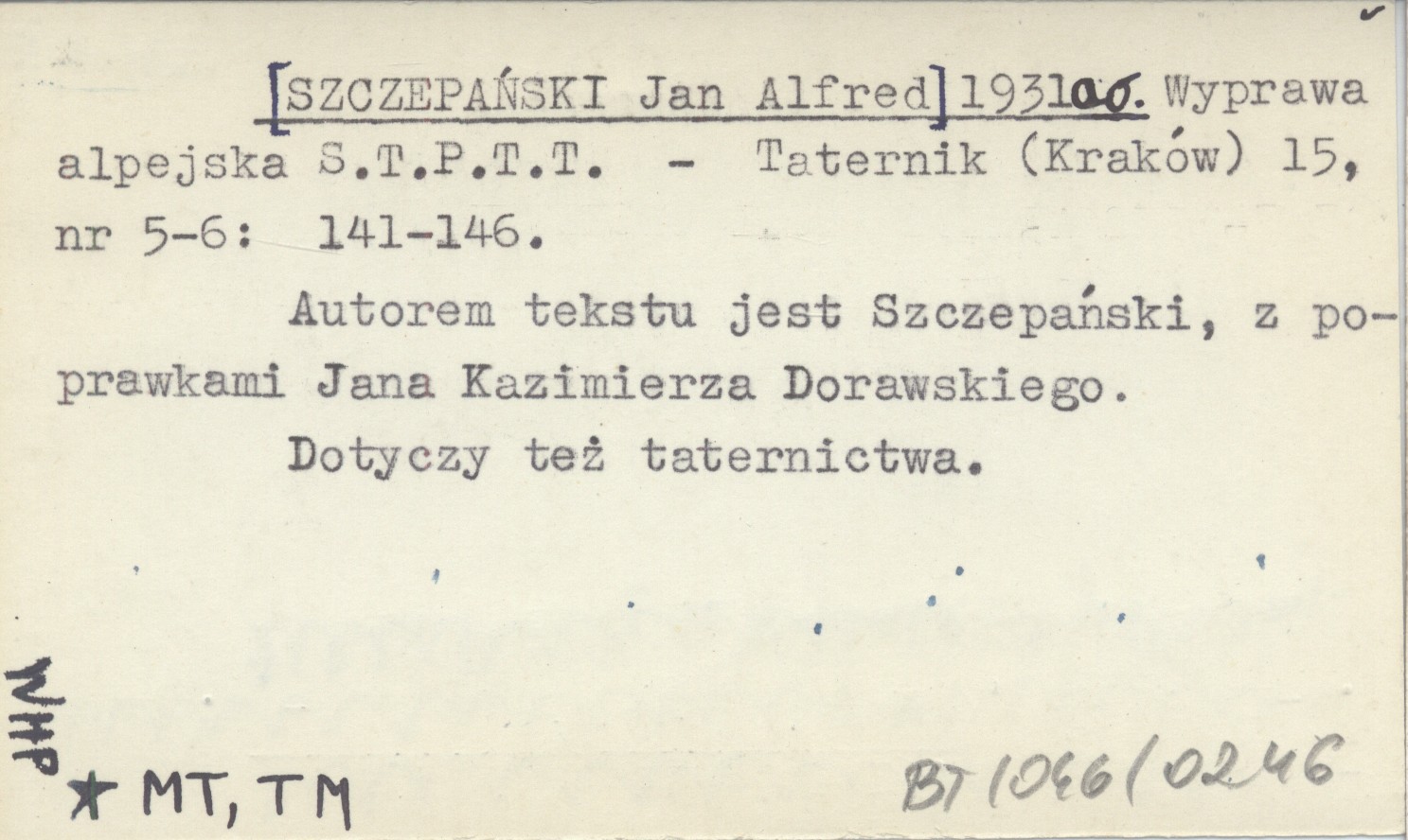 Taternik (Kraków) , 15, nr 5-6: 141-146. Dotyczy też taternictwa. Autorem tekstu jest Szczepański, z poprawkami Jana Kazimierza Dorawskiego.