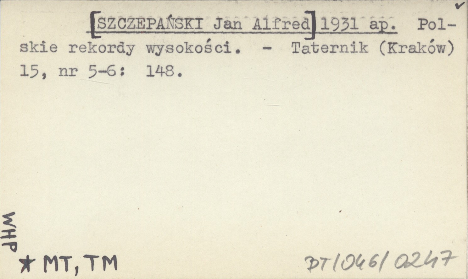[SZCZEPAŃSKI Jan Alfred] 1931 ap Polskie rekordy wysokości.