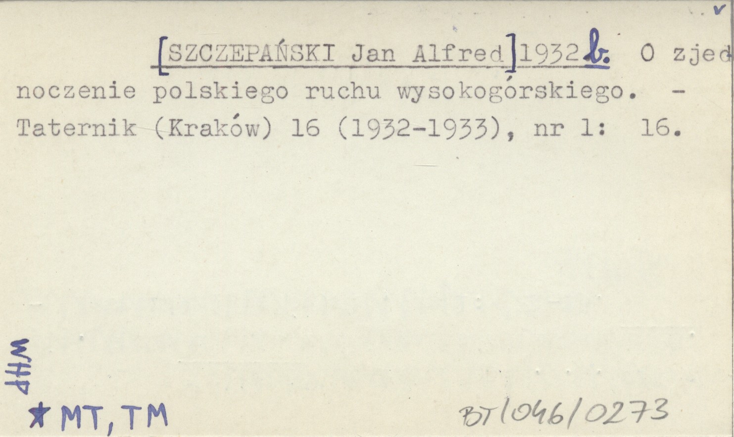 [SZCZEPAŃSKI Jan Alfred] 1932 b O zjednoczenie polskiego ruchu wysokogórskiego.