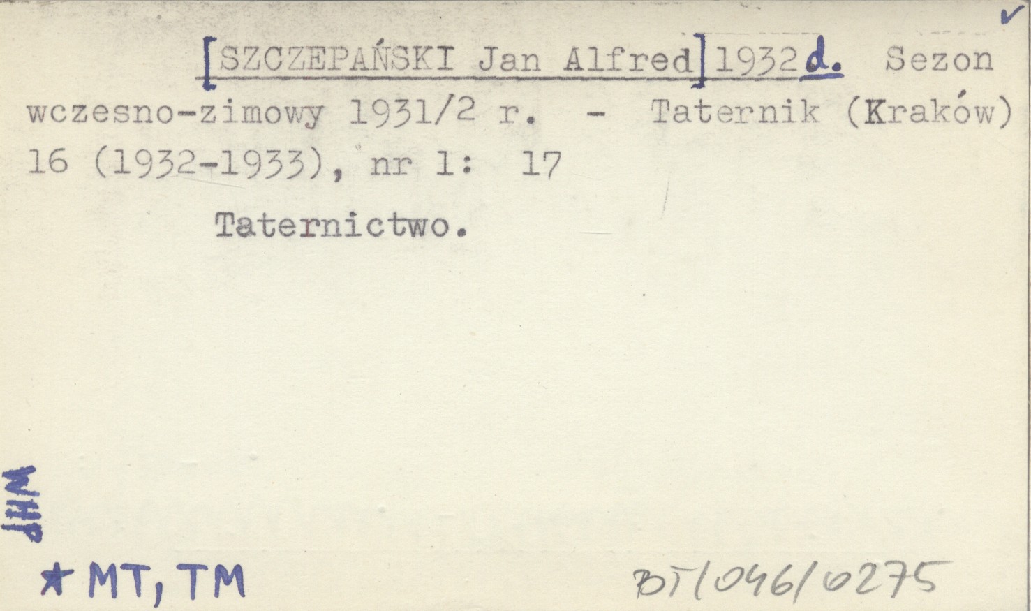 [SZCZEPAŃSKI Jan Alfred] 1932 d Sezon wczesno-zimowy 1931/2 r.