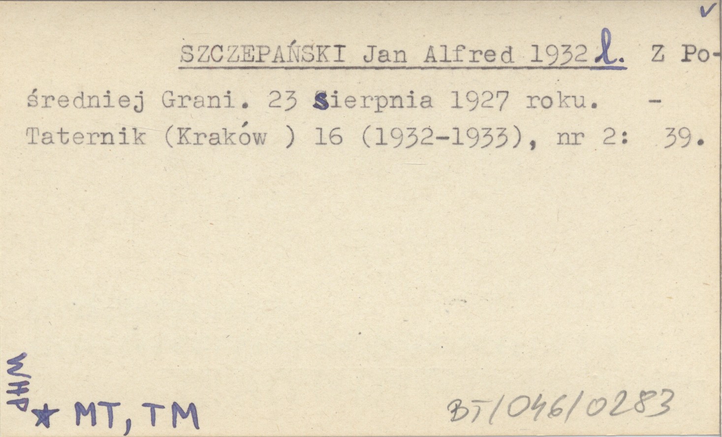 Taternik (Kraków) , 16 (1932-1933), nr 2: 39.