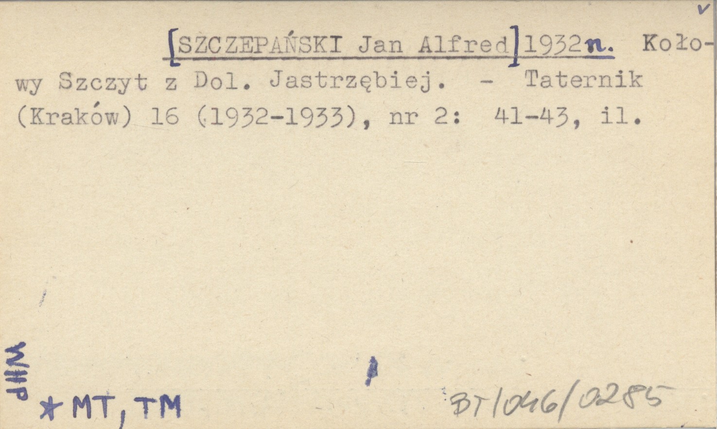 [SZCZEPAŃSKI Jan Alfred] 1932 n Kołowy Szczyt z Dol. Jastrzębiej.