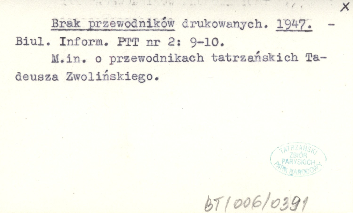 Biuletyn Informacyjny PTT, Nr 2: 9-10. M. in. o przewodnikach tatrzańskich Tadeusza Zwolińskiego.