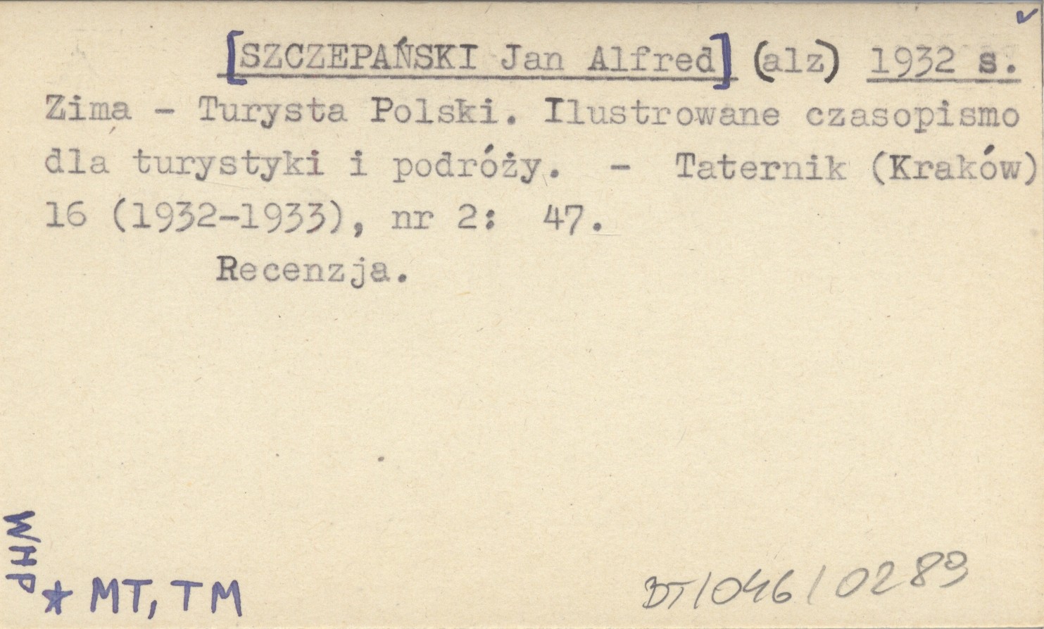 Taternik (Kraków) , 16 (1932-1933), nr 2: 47. Recenzja.