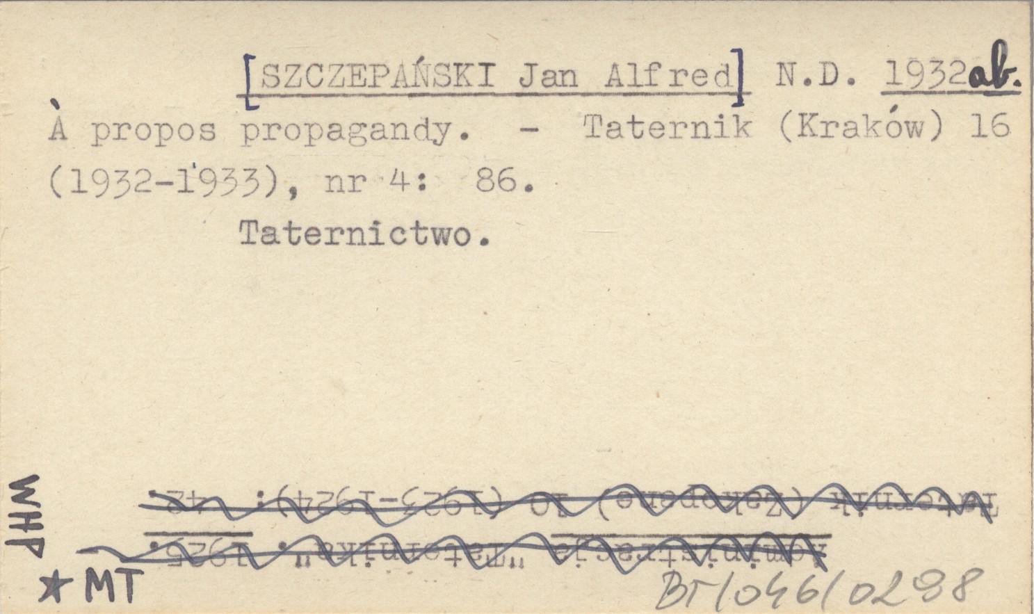 N. D. [SZCZEPAŃSKI Jan Alfred] 1932 ab Á propos propagandy.