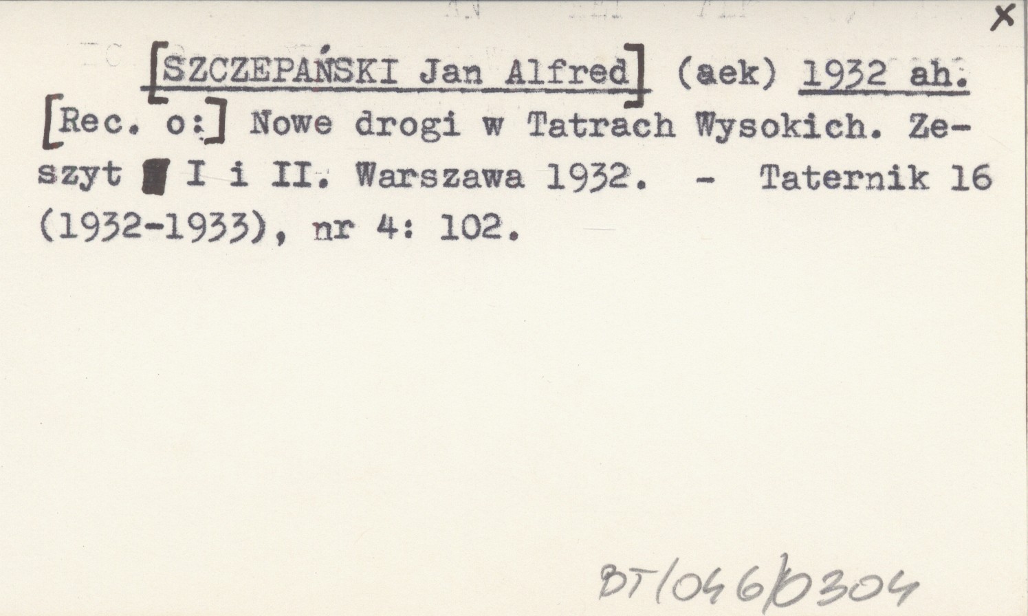 (aek) [SZCZEPAŃSKI Jan Alfred] 1932 ah [Rec. o:] Nowe drogi w Tatrach Wysokich. Zeszyt I i II. Warszawa 1932.