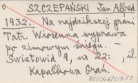 SZCZEPAŃSKI Jan Alfred 1932 Bilans taternickiej zimy.