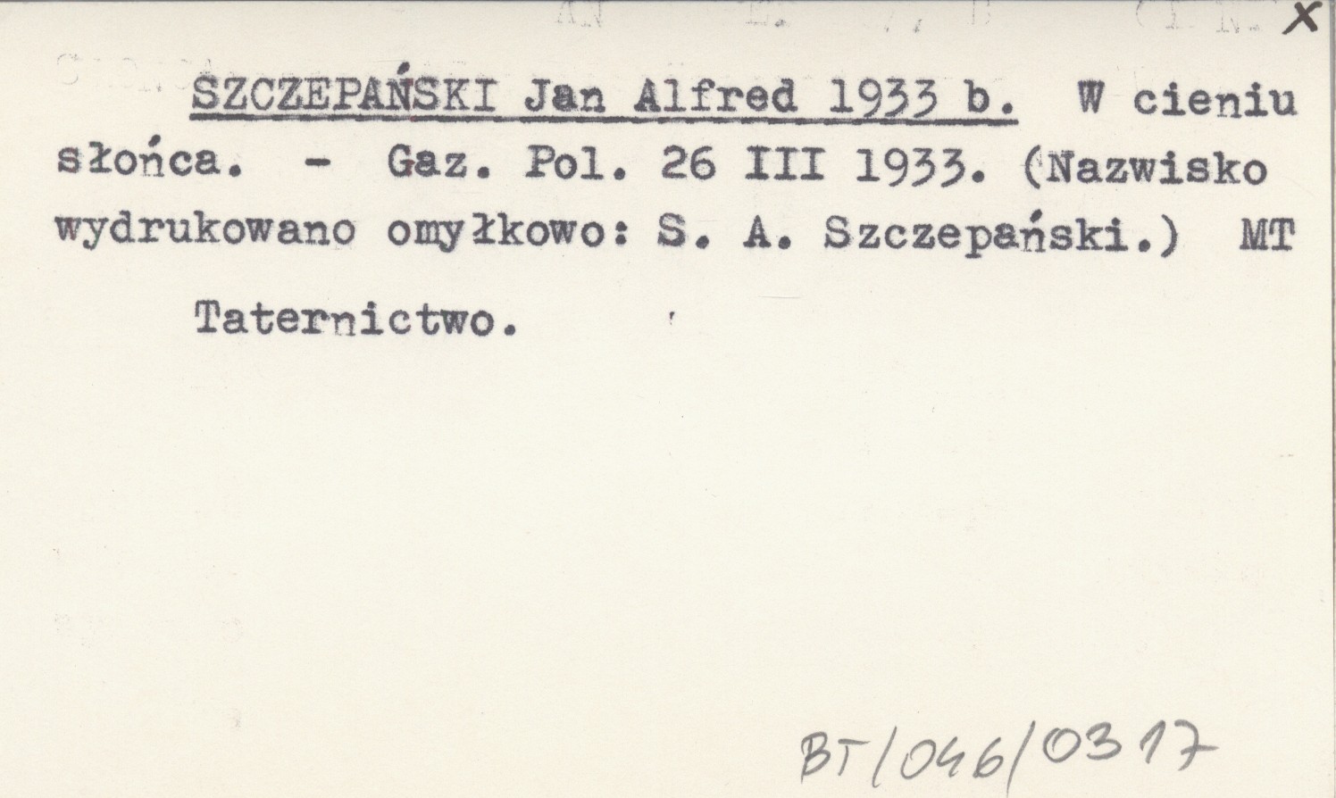 Gazeta Polska, 26 III 1933. Taternictwo. Nazwisko wydrukowano omyłkowo: S. A. Szczepański.