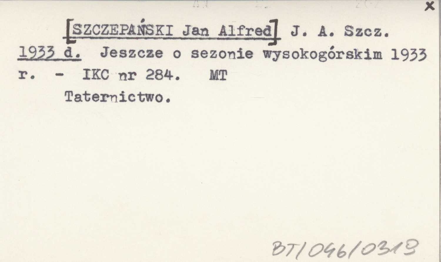 J. A. Szcz. [SZCZEPAŃSKI Jan Alfred] 1933 d Jeszcze o sezonie wysokogórskim 1933 r.