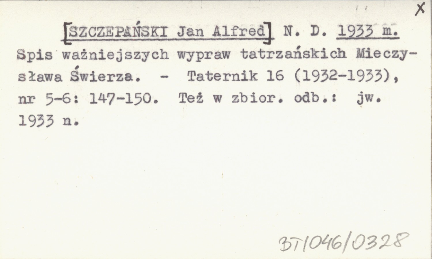 N. D. [SZCZEPAŃSKI Jan Alfred] 1933 m Spis ważniejszych wypraw tatrzańskich Mieczysława Świerza.