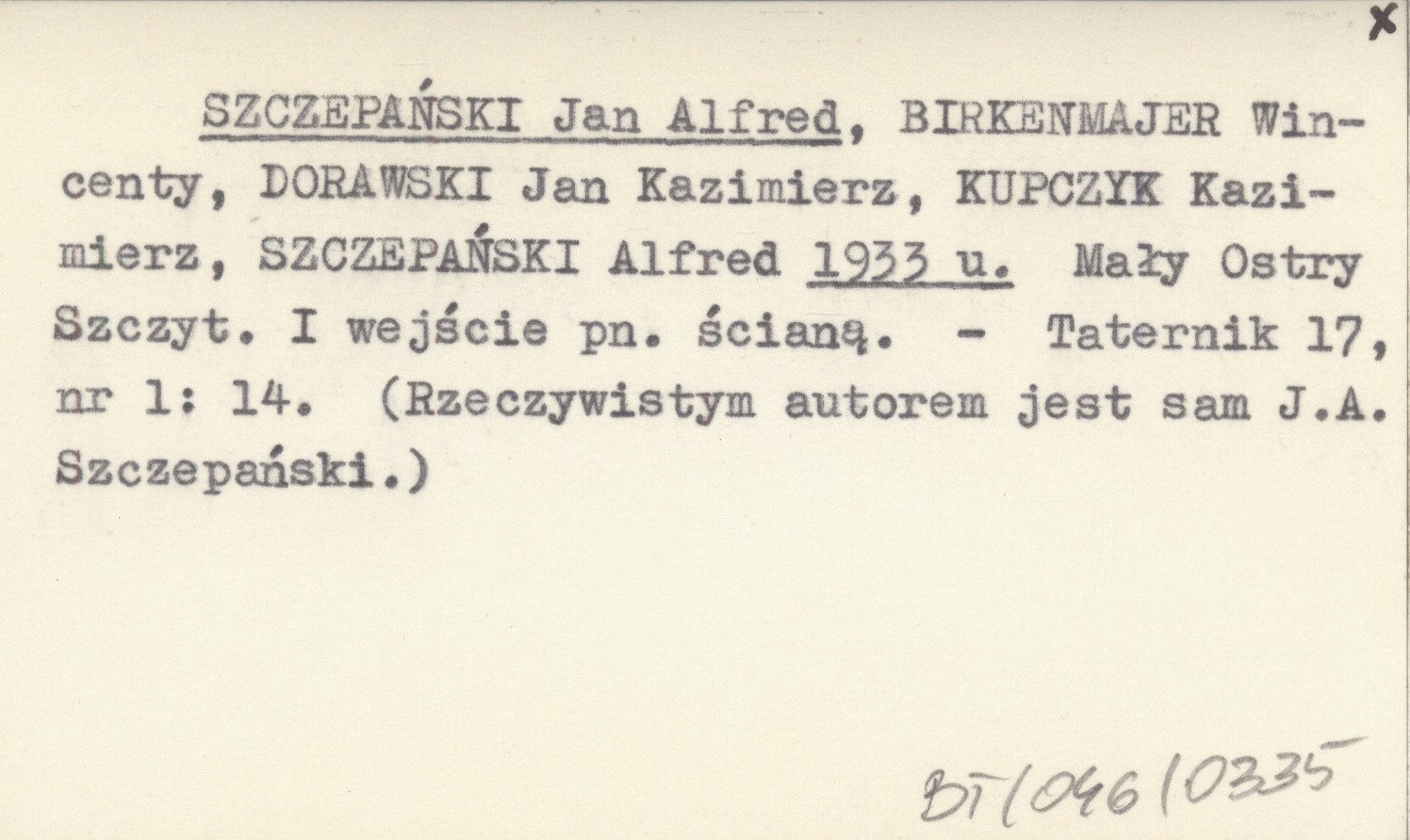 SZCZEPAŃSKI Jan Alfred BIRKENMAJER, Wincenty. ; DORAWSKI, Jan Kazimierz. ; KUPCZYK, Kazimierz. ; SZCZEPAŃSKI, Alfred. ; 1933 u Mały Ostry Szczyt. I wejście pn. ścianą.