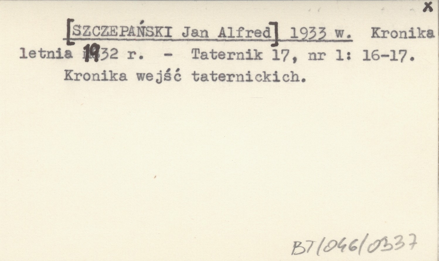 [SZCZEPAŃSKI Jan Alfred] 1933 w Kronika letnia 1932 r.