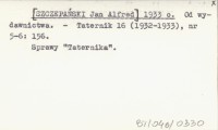 RED. [SZCZEPAŃSKI Jan Alfred] 1933 p [Inc.:] Ogłaszając powyższy artykuł dyskusyjny [...]. A zatem: sprawa profesjonalizmu taternickiego [...].