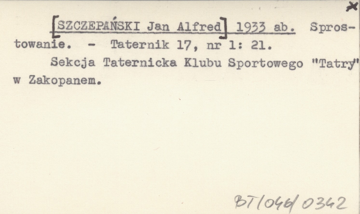 Taternik, 17, nr 1: 21. Sekcja Taternicka Klubu Sportowego "Tatry" w Zakopanem.