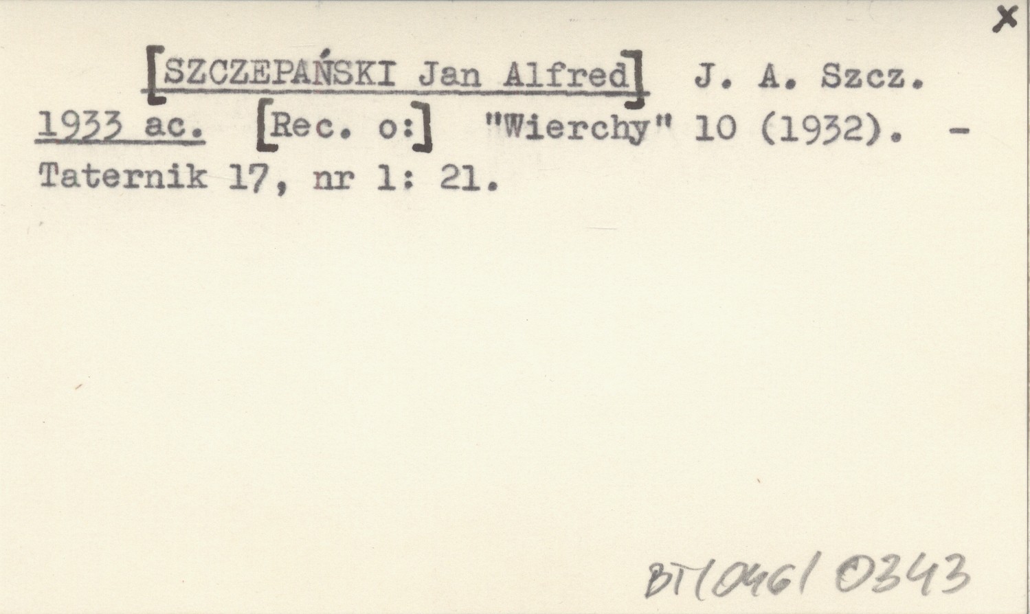 J. A. Szcz. [SZCZEPAŃSKI Jan Alfred] 1933 ac [Rec. o:] "Wierchy" 10 (1932).