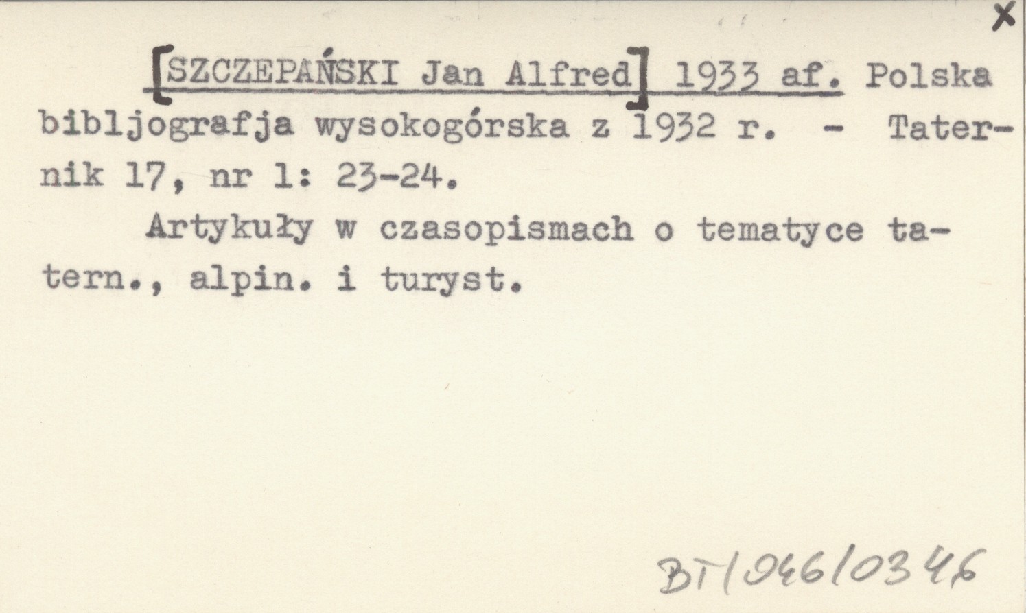 [SZCZEPAŃSKI Jan Alfred] 1933 af Polska bibljografja wysokogórska z 1932 r.