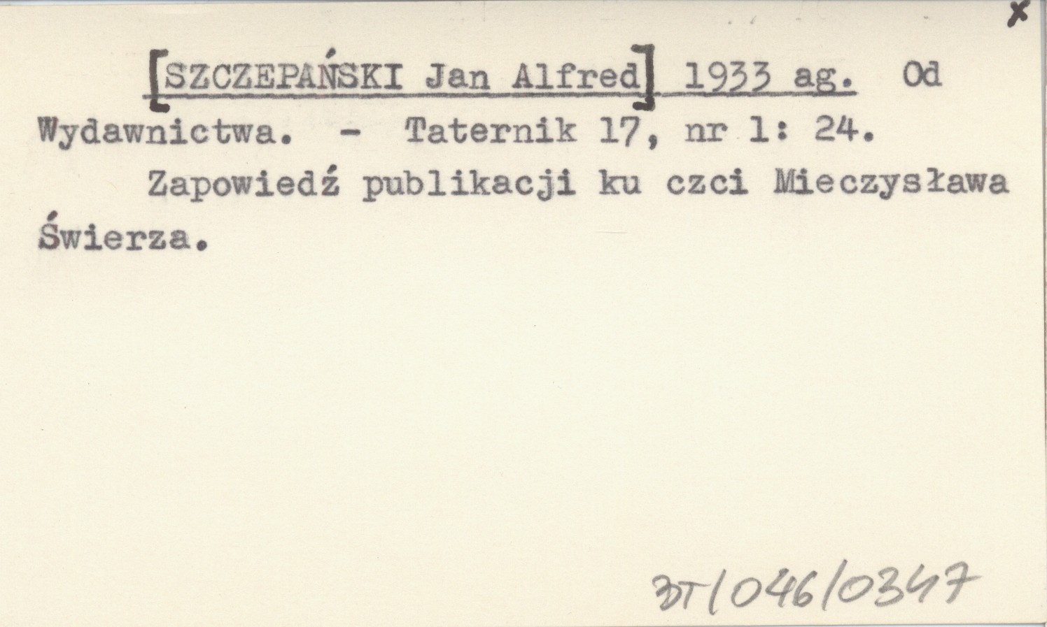 Taternik, 17, nr 1: 24. Zapowiedź publikacji ku czci Mieczysława Świerza.