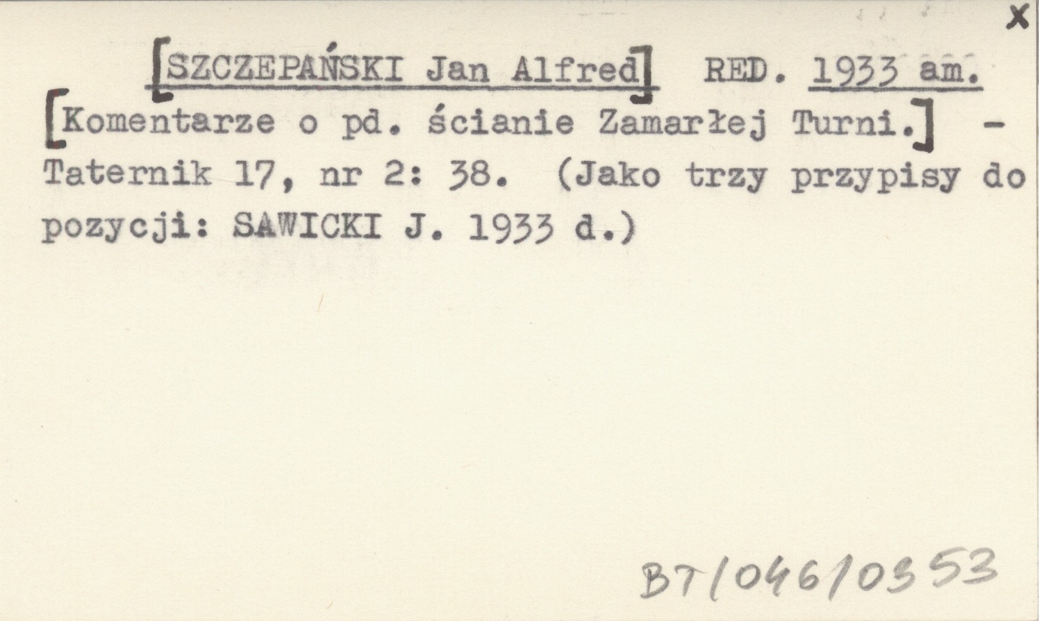 Taternik, 17, nr 2: 38. Jako trzy przypisy do pozycji: SAWICKI J. 1933 d.